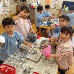 - 1月13日(火)❁年長・・・英語、月刊誌、カルタ❁年中・・・作品展の製作❁年少・・・リトミック、作品展の製作❁たまひよ・・・作品展に向けて絵の具や紙粘土製作
