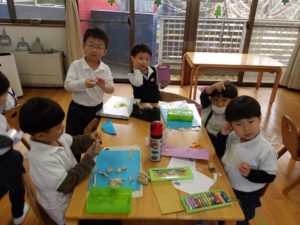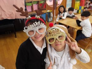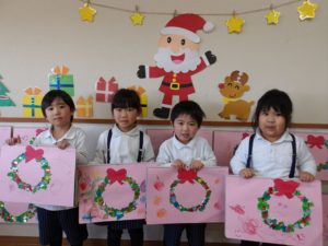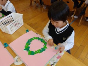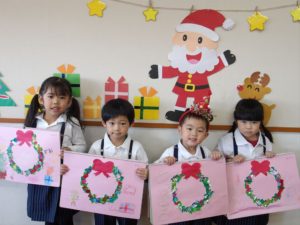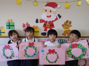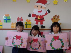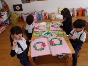 12月11日(木)★年長・・・クリスマスコンサートの練習★年中・・・12月壁面製作★年少・・・リトミック、戸外遊び★たまひよ・・・英語でクリスマスのオーナメント作り(*^^)v