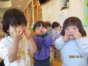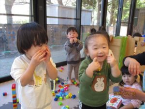気温は低かったですが、ぱんだ組のお部屋は太陽のひかりがたっぷり入るので、毎日ポカポカでした。