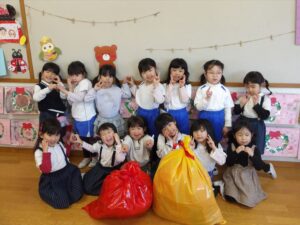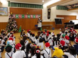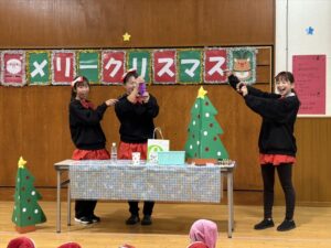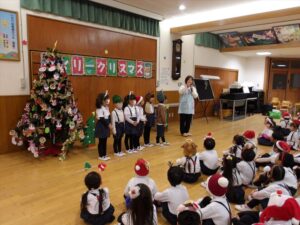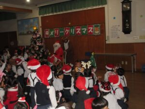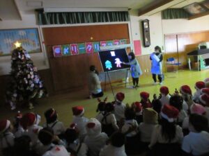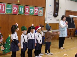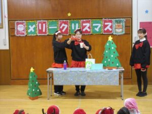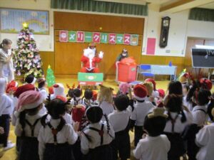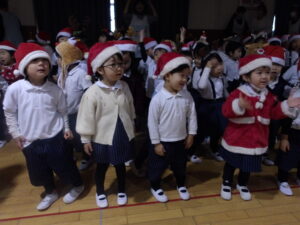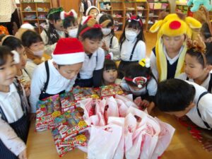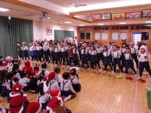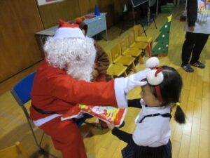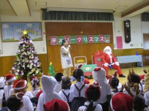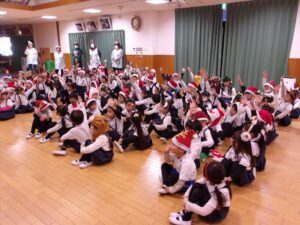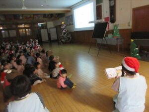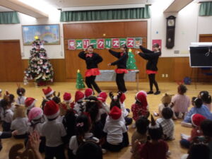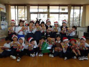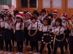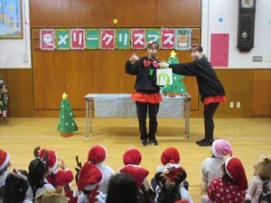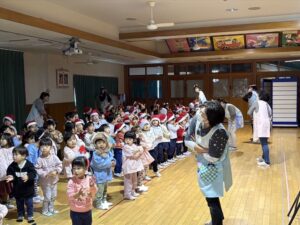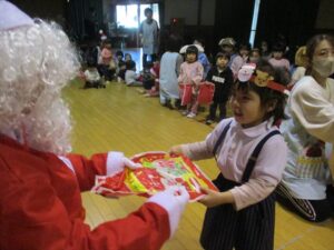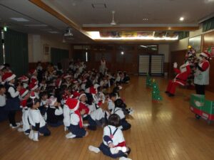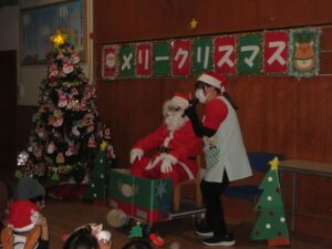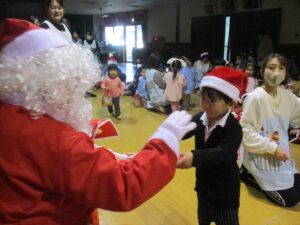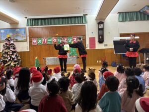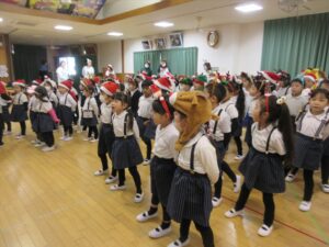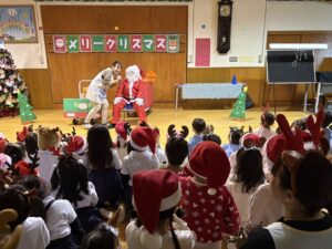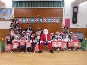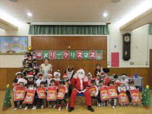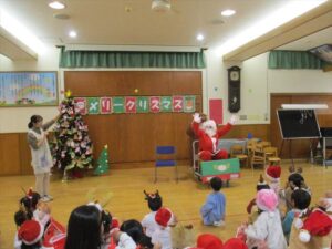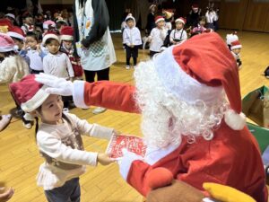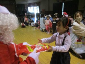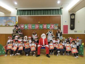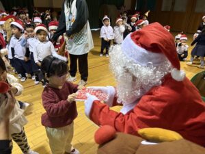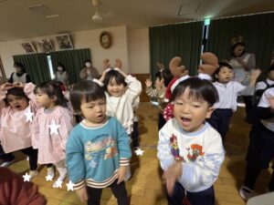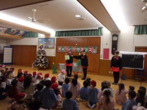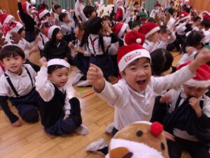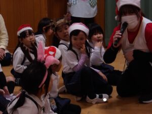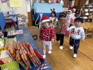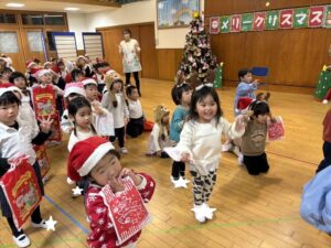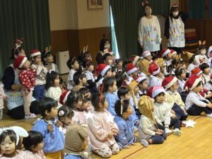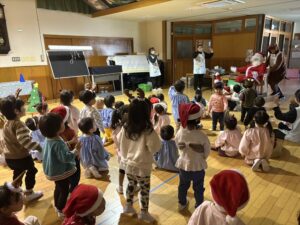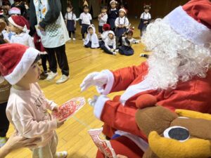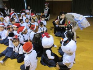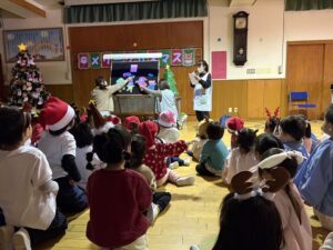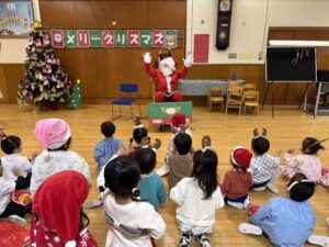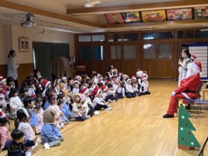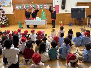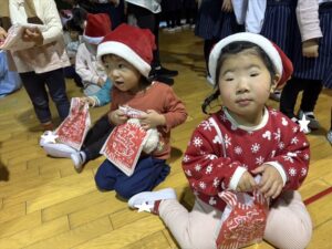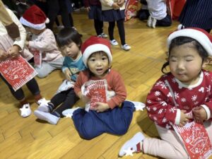 楽しみにしていたクリスマス会では、サンタさんからプレゼントをもらったり先生たちの出し物を見て喜んだりと、笑顔いっぱいの時間が過ごせました♡