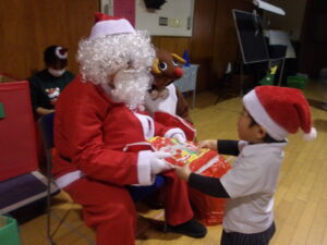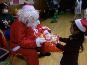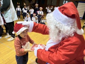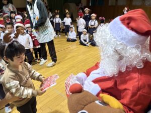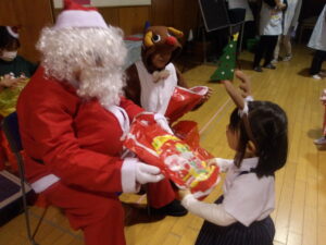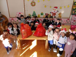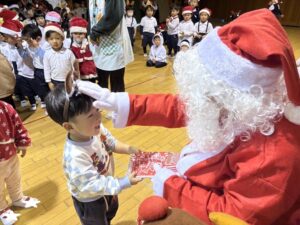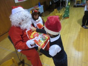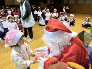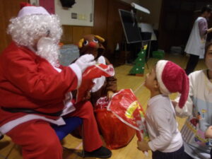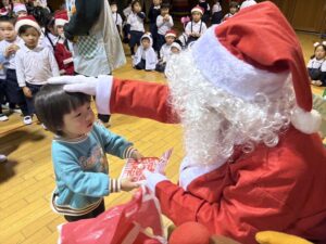 サンタさんからプレゼントをもらい、子どもたちは大喜びでした!♡