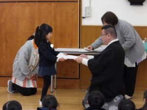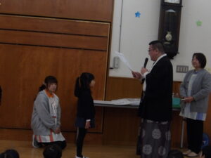 終業式ではユネスコで選ばれた2人が理事長先生から賞状をいただきましたヽ(^o^)丿
