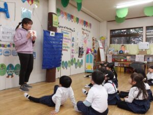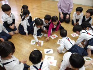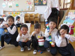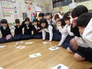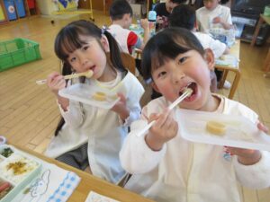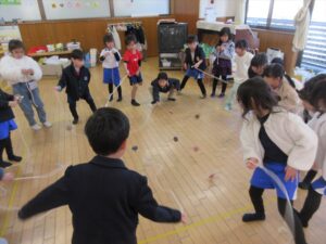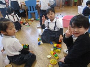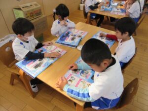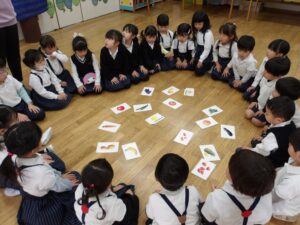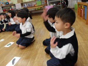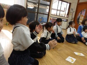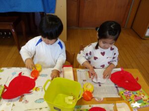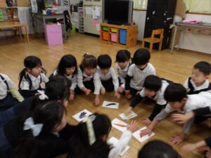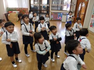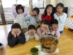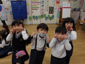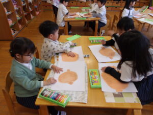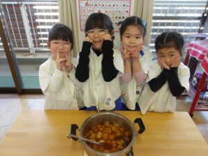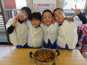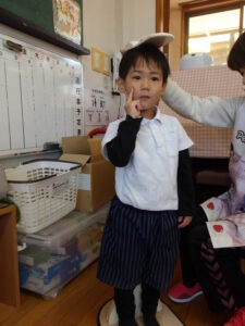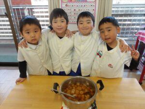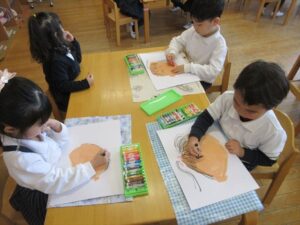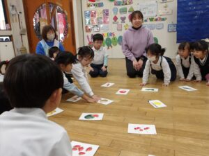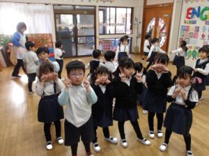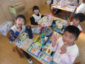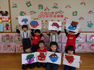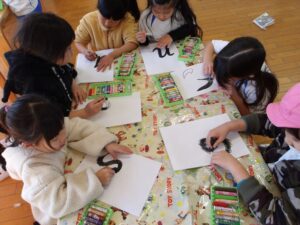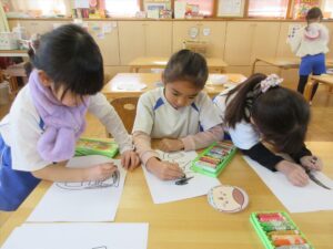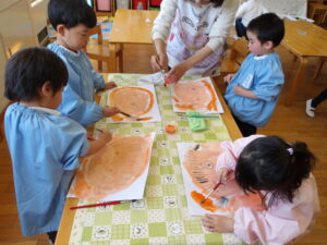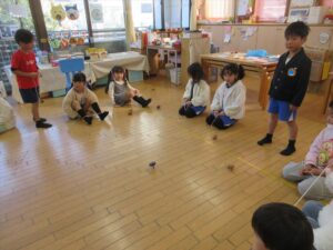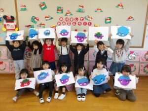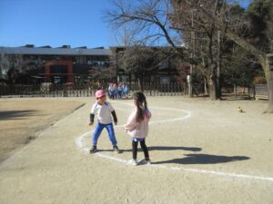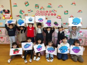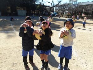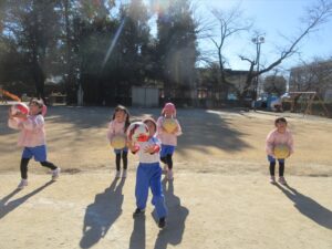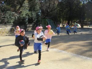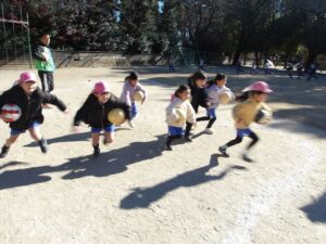 1月9日(金) 年長…大根パーティー・こま・ドッチボール 年中…英語・絵画 年少…身体測定 たまひよ…壁面製作・戸外遊び