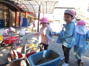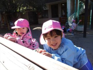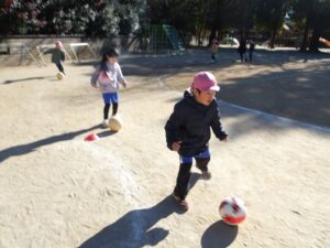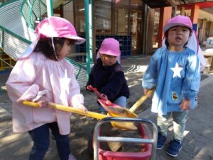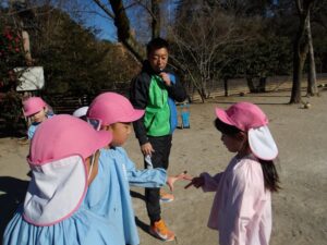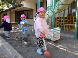 でも今日の昼間はとても暖かく、戸外遊びも元気いっぱい遊んでいました!!