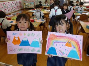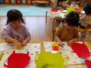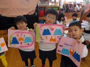 今日は鬼の絵を完成させたり、折り紙で富士山とぐんまちゃんを作りました☆彡