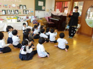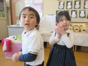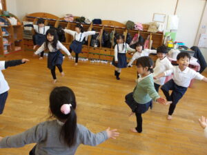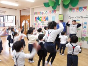 本日は3学期始めてのリトミックがあり、子どもたちは元気いっぱい取り組んでいました
