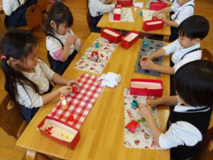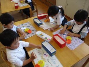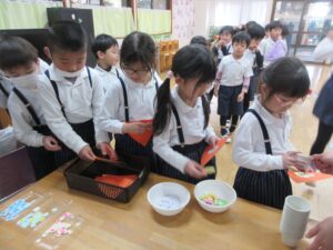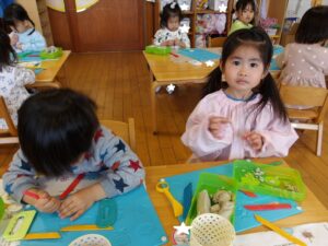 子どもたちは好きな形を選んでハサミで切りました