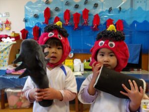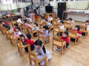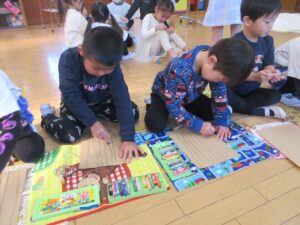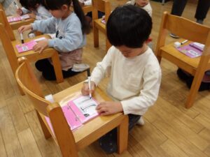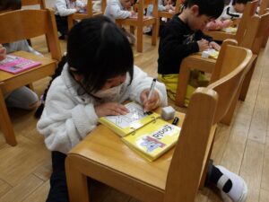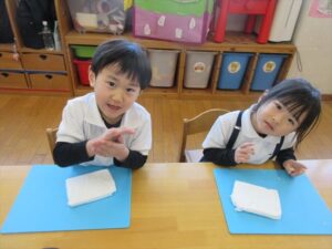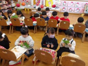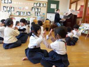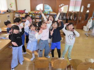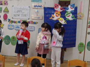 1月23日(金) 年長…体操・作品作り 年中…英語・作品作り 年少…リトミック・作品作り たまひよ…体操・作品作り
