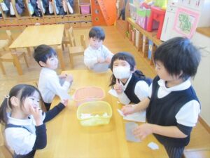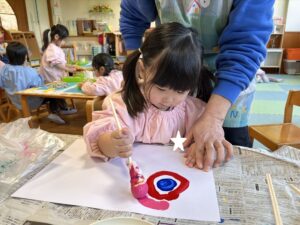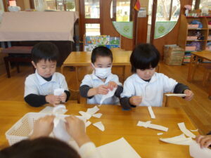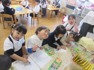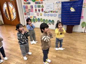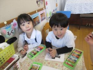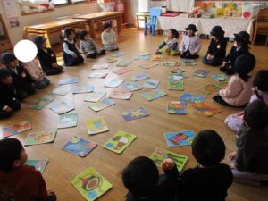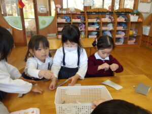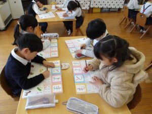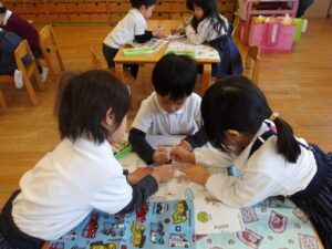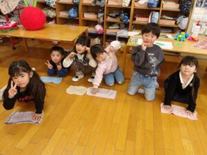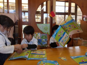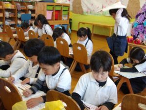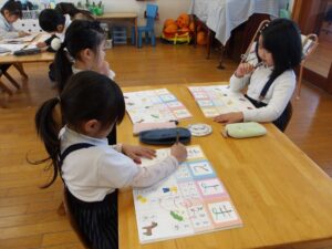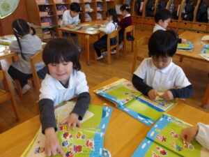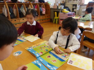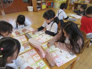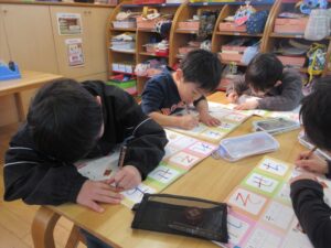 1月29日(木)❁年長→文字ワーク❁年中→作品作り、月刊誌❁年少→作品作り、月刊誌、粘土遊び、かるた遊び❁たまひよ→戸外遊び、絵画、英語(*^▽^*)