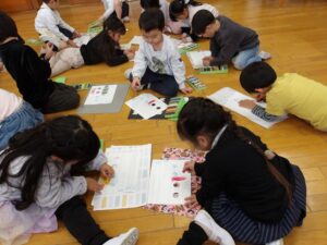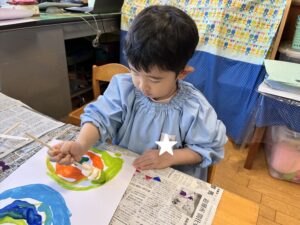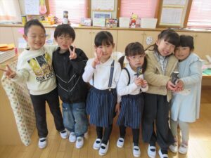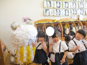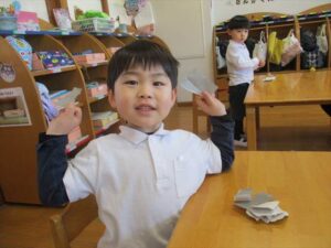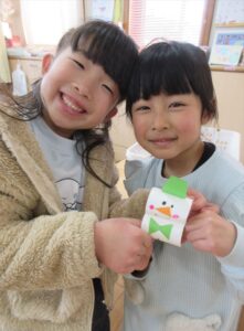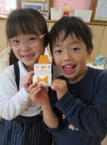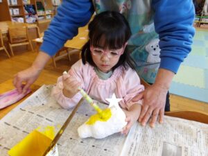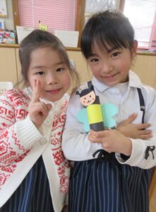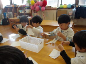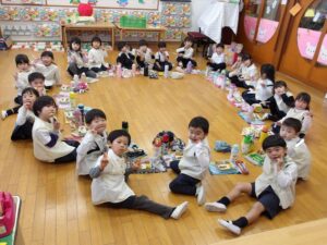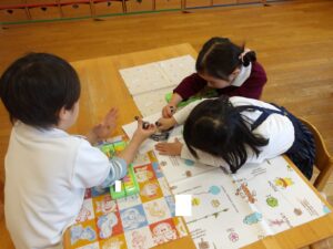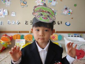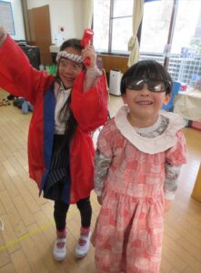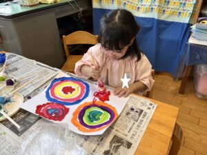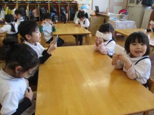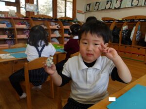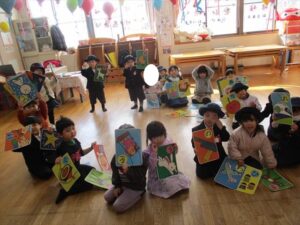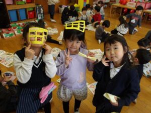 作品作りも一段落し、月刊誌のシール貼りや付録でついていたおにのお面を