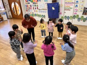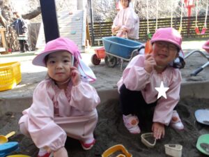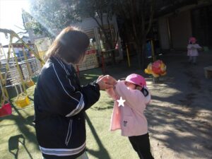 子どもたちは寒さにも負けず元気にお外で遊んでいます![]()