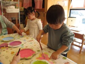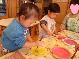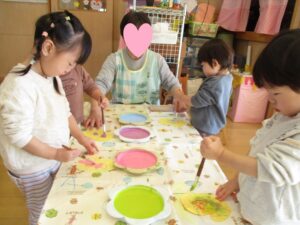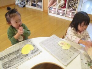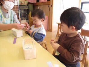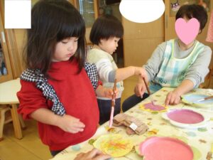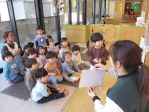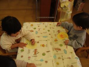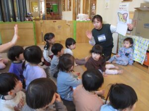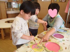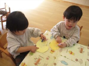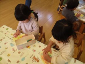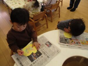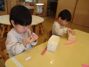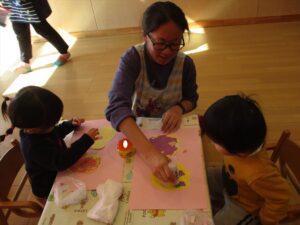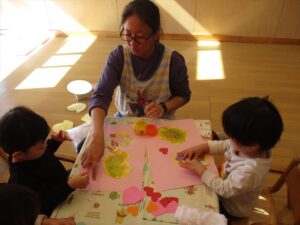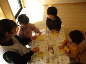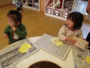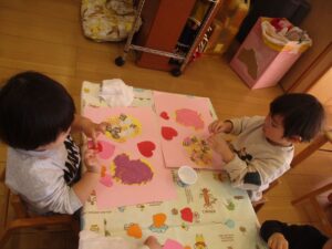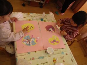 今週は2月の壁面製作と英語のレッスンを楽しみました。