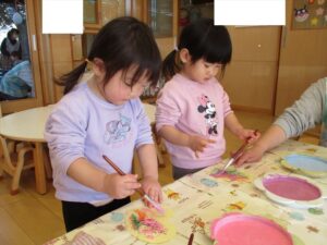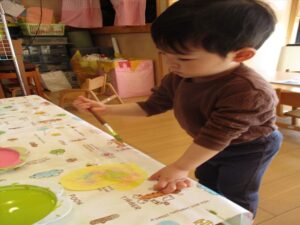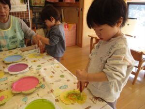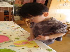 初めは好きな色のクレヨンでグルグル描きをしました。