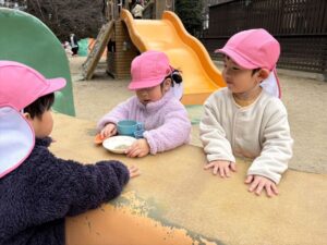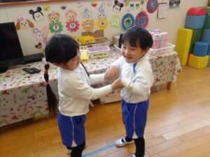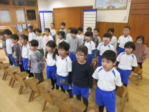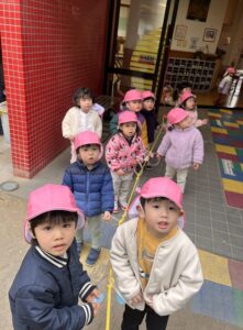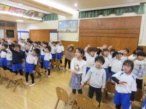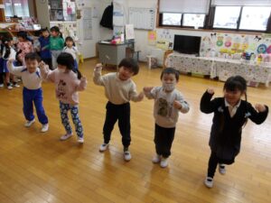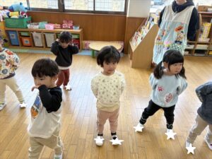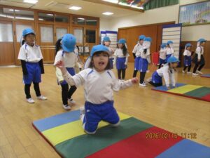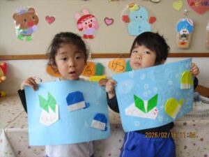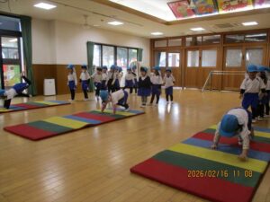 2月16日(月) ❁年長…体操❁年中…クラス活動❁年少…折り紙製作❁たまひよ…合同保育・お参り❁
