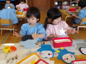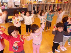 2月18日(水)❁年長→ぱんだ組さんと交流♡❁年中→お散歩へ❁年少→保育参観❁たまひよ→合奏練習、壁面製作(*^▽^*)