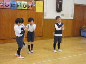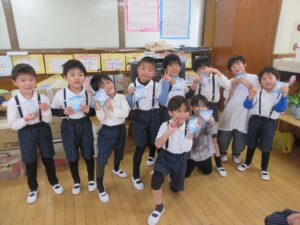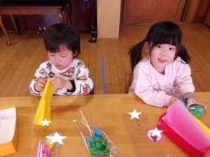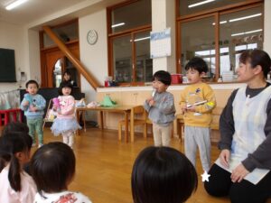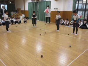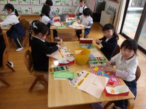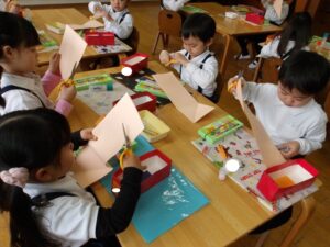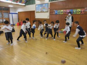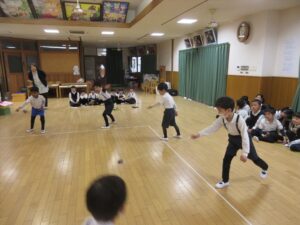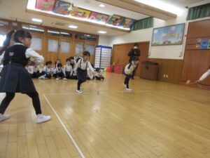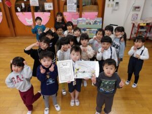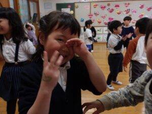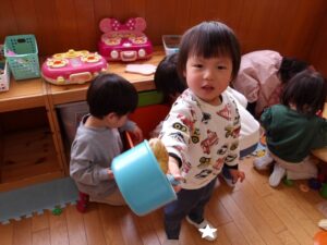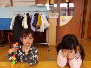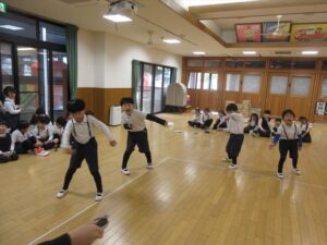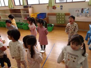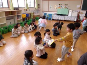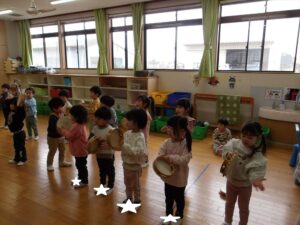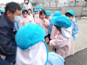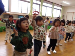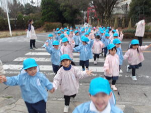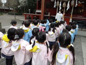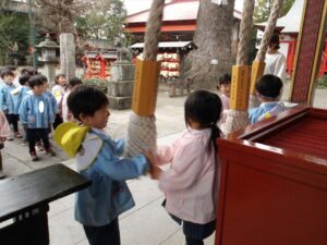 2月23日(火)★年長…こま回し大会★年中…お参り・おひなさま製作★年少…消防署見学★たまひよ…保育参観に向けて