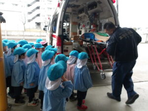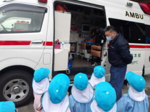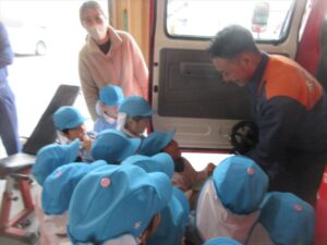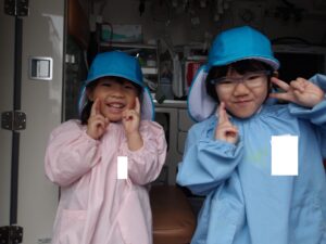 子どもたちは消防車と救急車を間近で見ることが出来てとても嬉しそうでした![]()