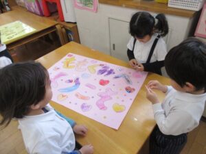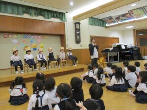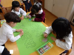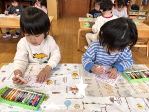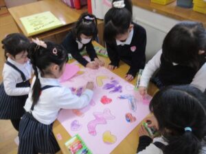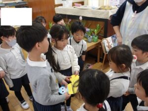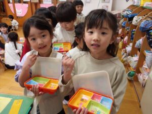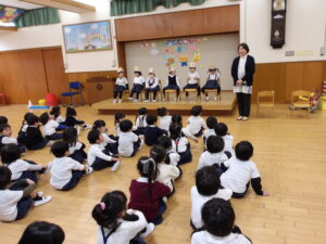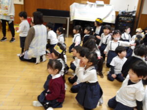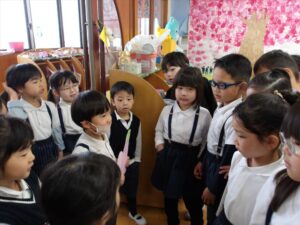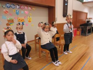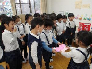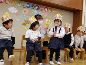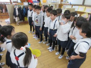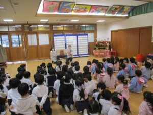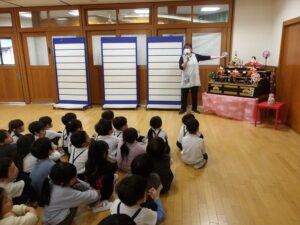 3月3日(火)今日は全学年ごとに、ひなまつり会をしました★年長★年中★年少…お誕生会★たまひよ…ひな祭り会・製作帳の整理