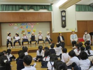 今日は年少さん・ぞうぐみ・ぱんだぐみと一緒にひな祭り会をしました(*^_^*)