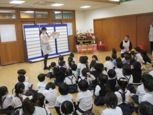 ひなまつり会も続けて行い、静かにお話が聞けました![]()