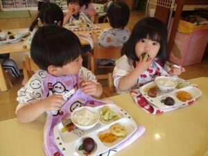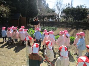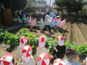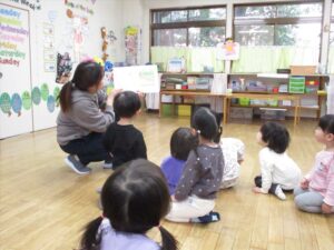 地震の避難訓練を行うとみんな放送を聞き、上手に避難することができました。