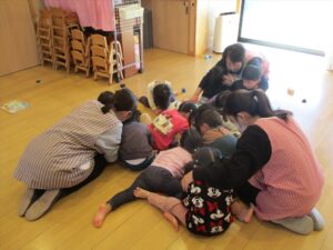 クラスのほとんどの子どもたちが集まり、沢山体を動かして遊びを楽しみました