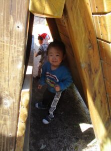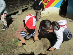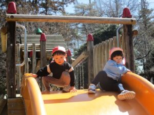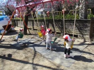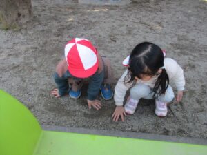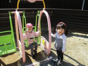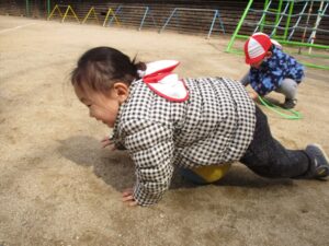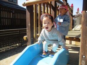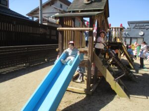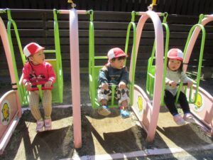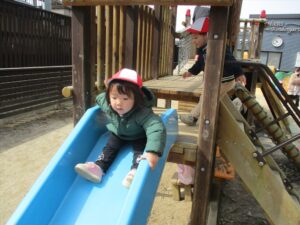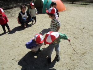 たまひよさん、ぞうさんと一緒に戸外遊び。