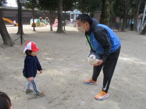 丸山先生のボールを貸してもらい大喜びの子どもたち
