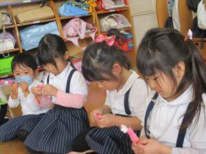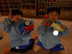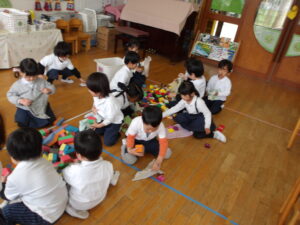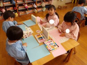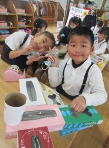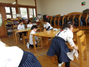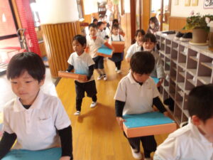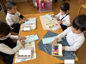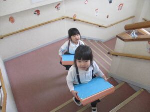 年中さんに向けて、2階にお道具箱も運びました![]()
