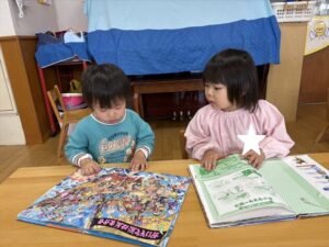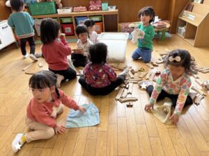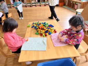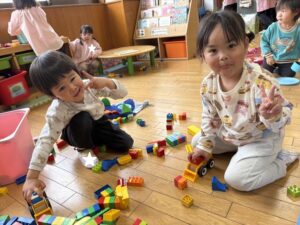 今日は半日保育だったので、各クラスでおもちゃで遊んだり、お部屋のお名前のシールはがしをしたりして、過ごしました![]()