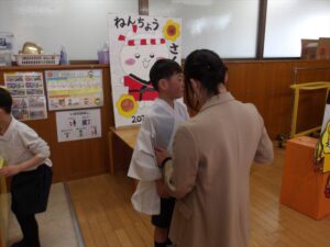 お着替えが済んだら、最後に先生からおでこにおまじないをしてもらいました