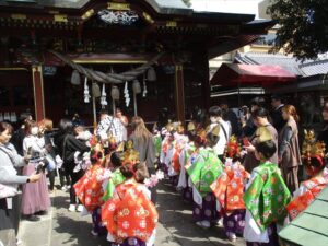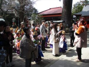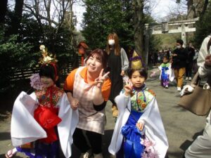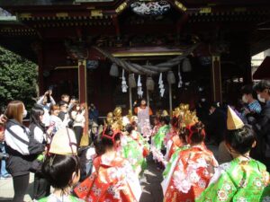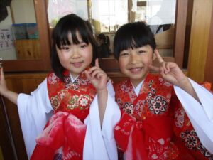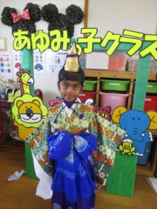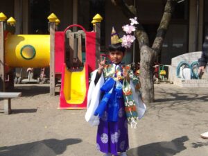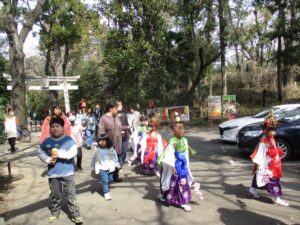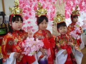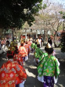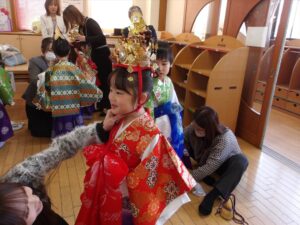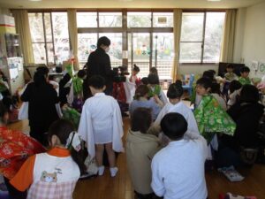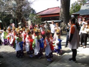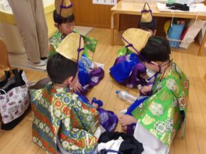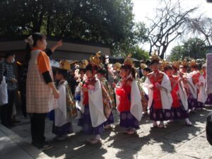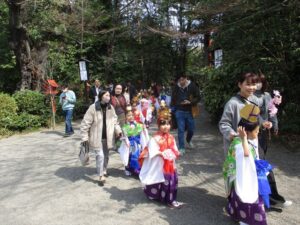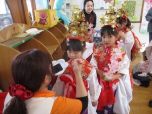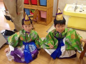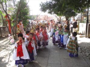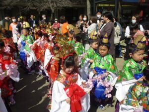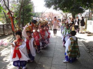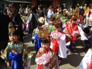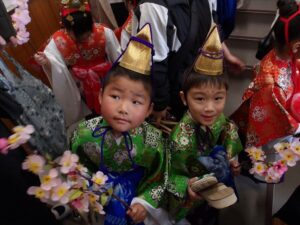 年長さんのお友達が幼稚園の代表で稚児衣装を着て参加しました