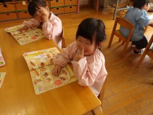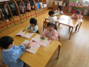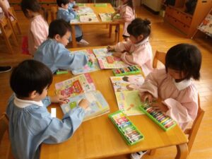 4月15日(水)★年長…こいのぼり製作★年中…イタガキさんの絵★年少…英語