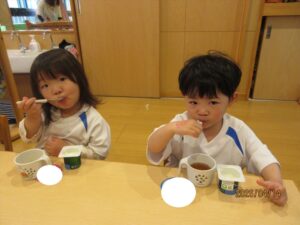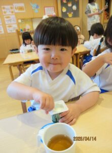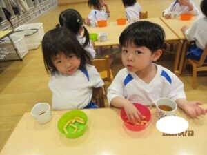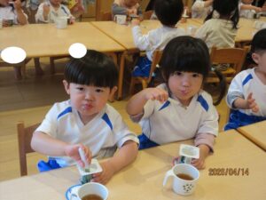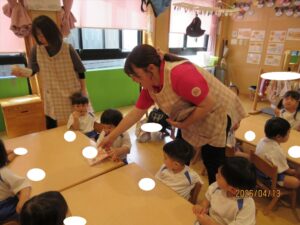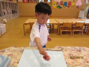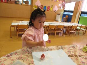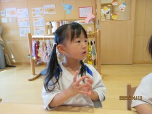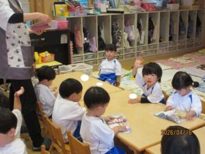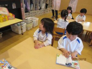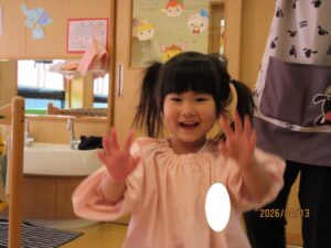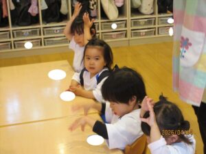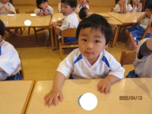 今週からは朝の活動がスタートしました!お歌を元気いっぱい歌ったり、お名前を呼ばれると「はーい!」と可愛くお返事したりと、にぎやかな時間を過ごしています♪