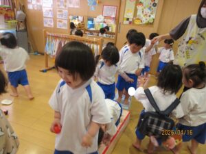 入園式から約2週間が経ち、最初は涙が見られたお友だちも、少しずつ笑顔で登園できるようになりました![]()