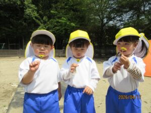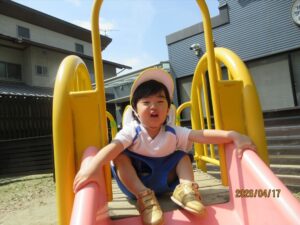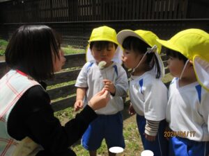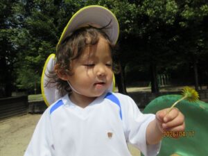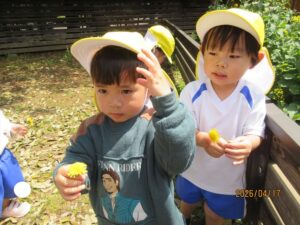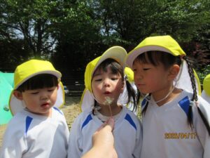 たんぽぽのわたげを「ふ~」と上手にふいたり、すべり台をすべったり、とっても楽しかったね♡