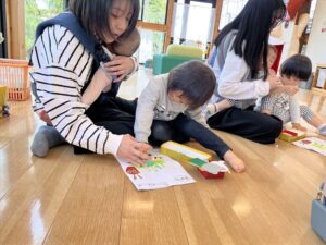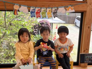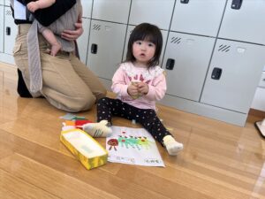 完成した作品を持って撮った写真に台紙を付けて可愛いくしたものが出来ましたので、らっこルームに遊びに来ながらお持ち帰りくださいね![]()