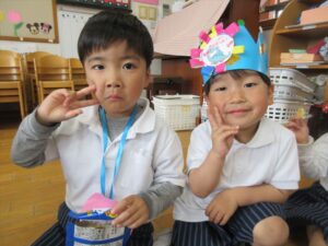 🦊4月23日(木)🦊🌷年長→新しいお友だちを迎える会♡🌼年中→こいのぼり製作、身体測定🌷年少→新しいお友だちを迎える会に参加しました(*^_^*)♡♡