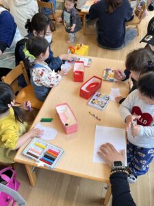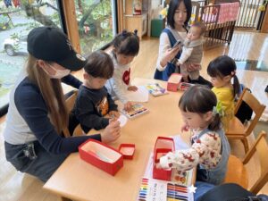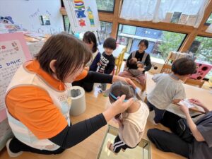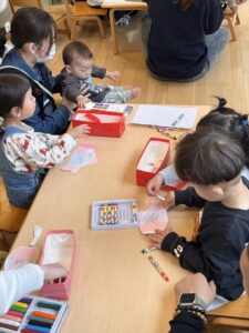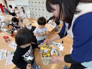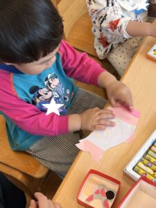 クレヨンで模様を描いたり、シールを貼ったりみんな真剣に取り組んでくれていて、とても可愛かったです
