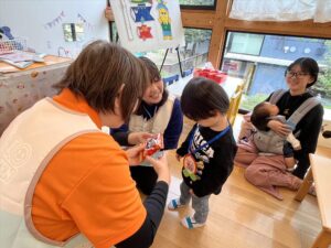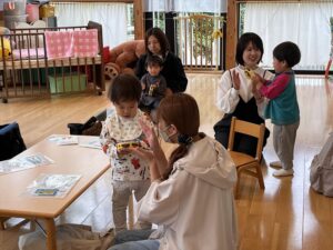 お歌を歌ったり、手遊びやタンバリンでリズムをとったり楽しみました