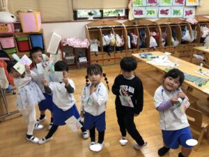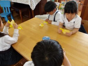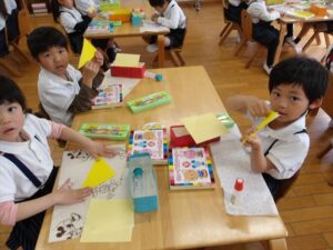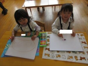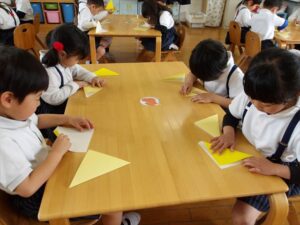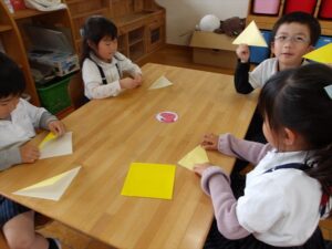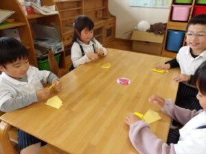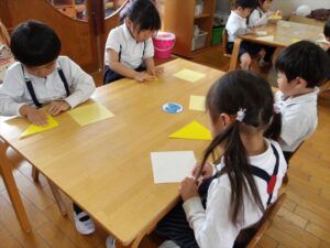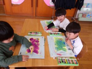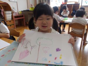 🦊4月27日(月)🦊🌷年長→おりがみ製作🌼年中→体操教室🌷年少→初めての自由画帳でお絵描きをしました(^^♪🌼