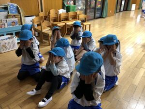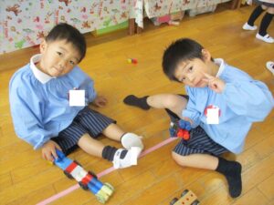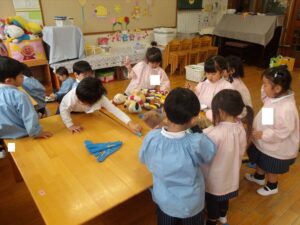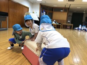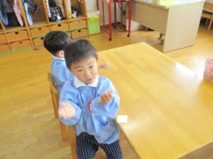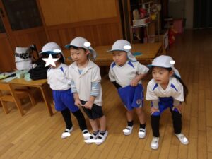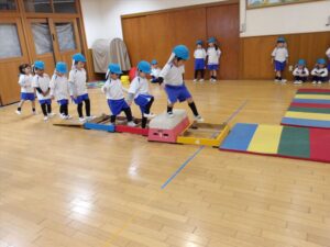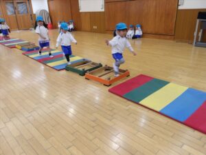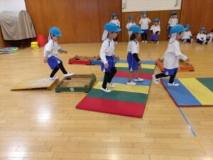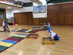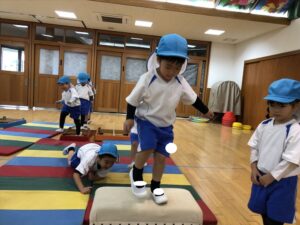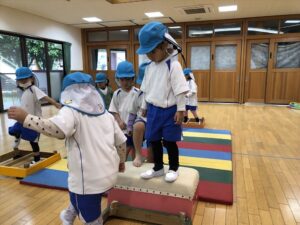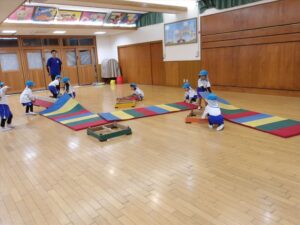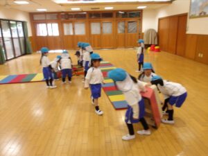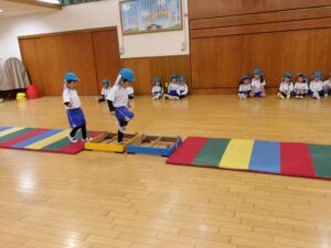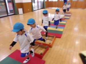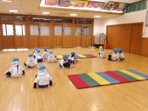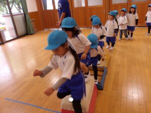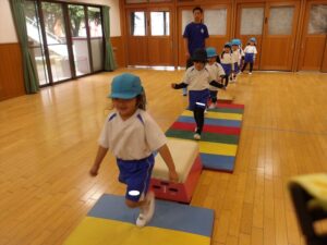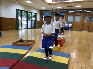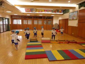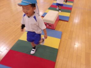 雨だったのお遊戯室で体操教室がありました