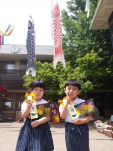 ゆか先生とリトミックをしたり、大きなこいのぼりと写真を撮ったりしました!