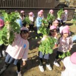 - 1月8日(木)★年長・・・大根収獲、折り紙製作★年中・・・身体測定、壁面製作、鬼の絵★年少・・・絵画、壁面製作★たまひよ・・・英語、壁面製作